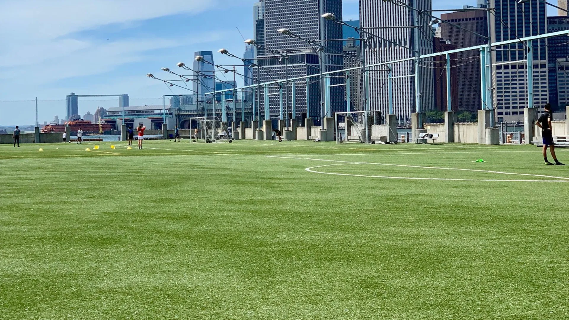 Perimeter anchoring and infill distribution are completed so the surface remains stable, even, and practical for the intended activity profile.